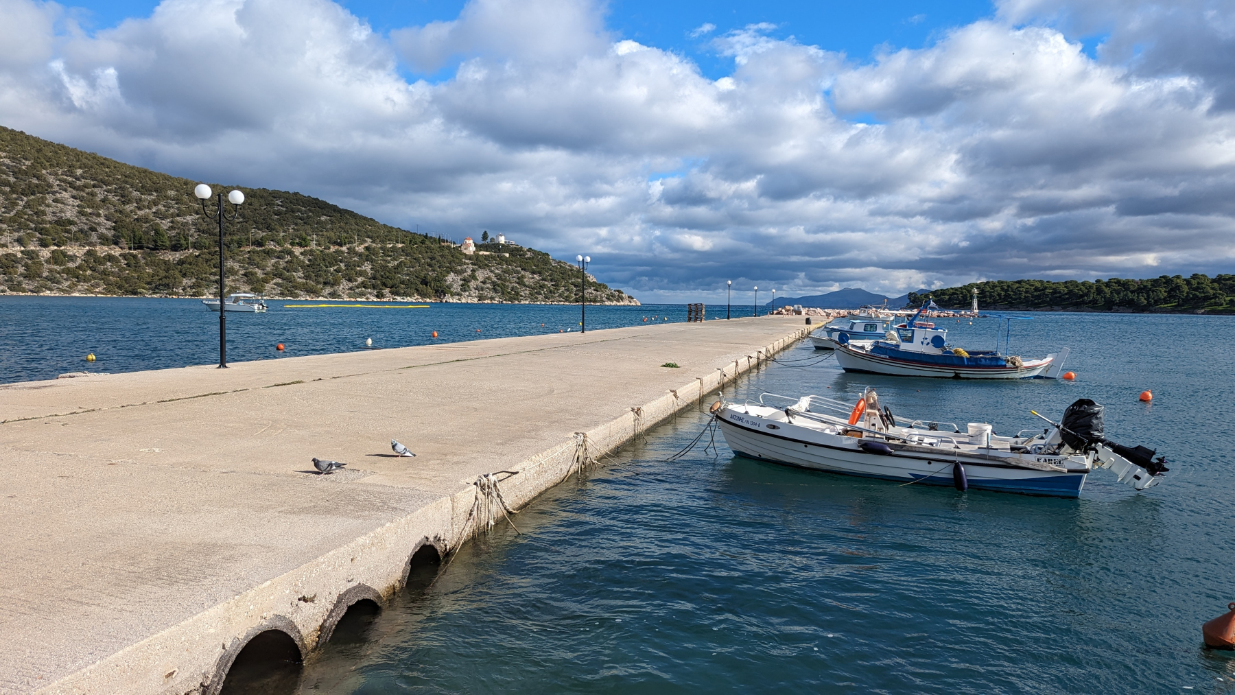 Darauf erst einmal ein paar Souvlakis. Mit tagsüber unter 15 Grad ist es etwas kühler und es soll die Tage unter 10 Grad werden mit vielen starken Windböen. Wir müssen ja noch einen neuen Reifen besorgen. Dafür haben wir uns Reifenhändler in Nafplion ausgesucht. Vorher geht es allerdings noch um den Daumen des Peloponnes, die argolische Halbinsel.
