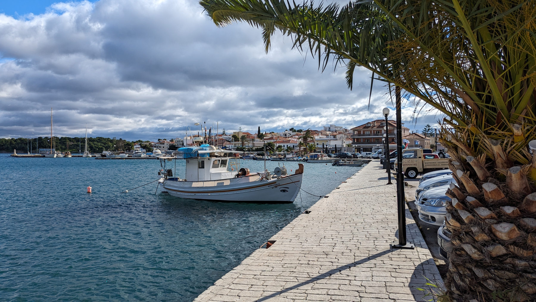 Darauf erst einmal ein paar Souvlakis. Mit tagsüber unter 15 Grad ist es etwas kühler und es soll die Tage unter 10 Grad werden mit vielen starken Windböen. Wir müssen ja noch einen neuen Reifen besorgen. Dafür haben wir uns Reifenhändler in Nafplion ausgesucht. Vorher geht es allerdings noch um den Daumen des Peloponnes, die argolische Halbinsel.