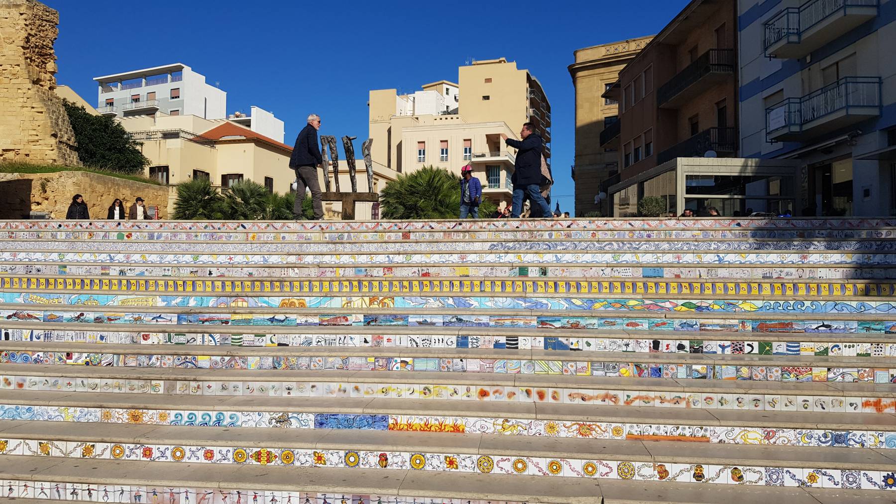 Drei Nächte bleiben wir an „unserem“ Leuchtturm. Wir wollen uns ein paar Orte an der Westküste Siziliens mit arabischem Flair anschauen. Mazara del Vallo und Marsala zunächst. Ersterer macht einen ganz netten Eindruck durch die vielen bemalten Tore und Keramikfliesen an den Wänden. Die engen Gassen wirken Bazarartig. Heute ist der zweite Weihnachtstag, so ist es ziemlich trostlos, da alles zu ist. Immerhin können wir so viele Kunstwerke auf den geschlossenen Toren sehen. Marsala, bekannt durch seinen Likörwein, ist dann doch einiges runtergekommener. Trapani etwas nördlicher, ist auch werktags trostlos, noch runtergekommener und in allen Nebenwegen liegt viel Müll. Noch ein paar erklärende Worte zu unseren eher negativen Eindrücken von den drei Orten. Teilweise historische Architektur und einige gepflegte Gassen oder Wegesabschnitte. Es überwiegen aber, wie überall auf Sizilien, ungepflegte und kaputte Gehwege, viele Gebäude in sehr stark erneuerungsbedürftigem Zustand und Müllansammlungen-/berge an Straßen und vielen Nebenwegen sowie auch an Stränden (speziell Stadtstrand Trapani). Unser Eindruck ist auch, dass vor vielen Jahren viel Geld in die Stadtplanung investiert worden ist, es aber nie bis zum Ende fertig gestellt wurde und sich dann auch niemand mehr darum gekümmert hat.