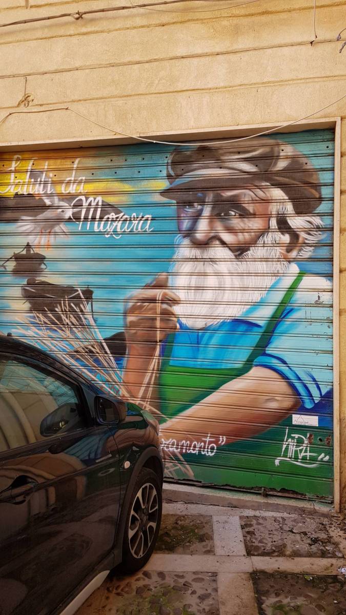 Drei Nächte bleiben wir an „unserem“ Leuchtturm. Wir wollen uns ein paar Orte an der Westküste Siziliens mit arabischem Flair anschauen. Mazara del Vallo und Marsala zunächst. Ersterer macht einen ganz netten Eindruck durch die vielen bemalten Tore und Keramikfliesen an den Wänden. Die engen Gassen wirken Bazarartig. Heute ist der zweite Weihnachtstag, so ist es ziemlich trostlos, da alles zu ist. Immerhin können wir so viele Kunstwerke auf den geschlossenen Toren sehen. Marsala, bekannt durch seinen Likörwein, ist dann doch einiges runtergekommener. Trapani etwas nördlicher, ist auch werktags trostlos, noch runtergekommener und in allen Nebenwegen liegt viel Müll. Noch ein paar erklärende Worte zu unseren eher negativen Eindrücken von den drei Orten. Teilweise historische Architektur und einige gepflegte Gassen oder Wegesabschnitte. Es überwiegen aber, wie überall auf Sizilien, ungepflegte und kaputte Gehwege, viele Gebäude in sehr stark erneuerungsbedürftigem Zustand und Müllansammlungen-/berge an Straßen und vielen Nebenwegen sowie auch an Stränden (speziell Stadtstrand Trapani). Unser Eindruck ist auch, dass vor vielen Jahren viel Geld in die Stadtplanung investiert worden ist, es aber nie bis zum Ende fertig gestellt wurde und sich dann auch niemand mehr darum gekümmert hat.