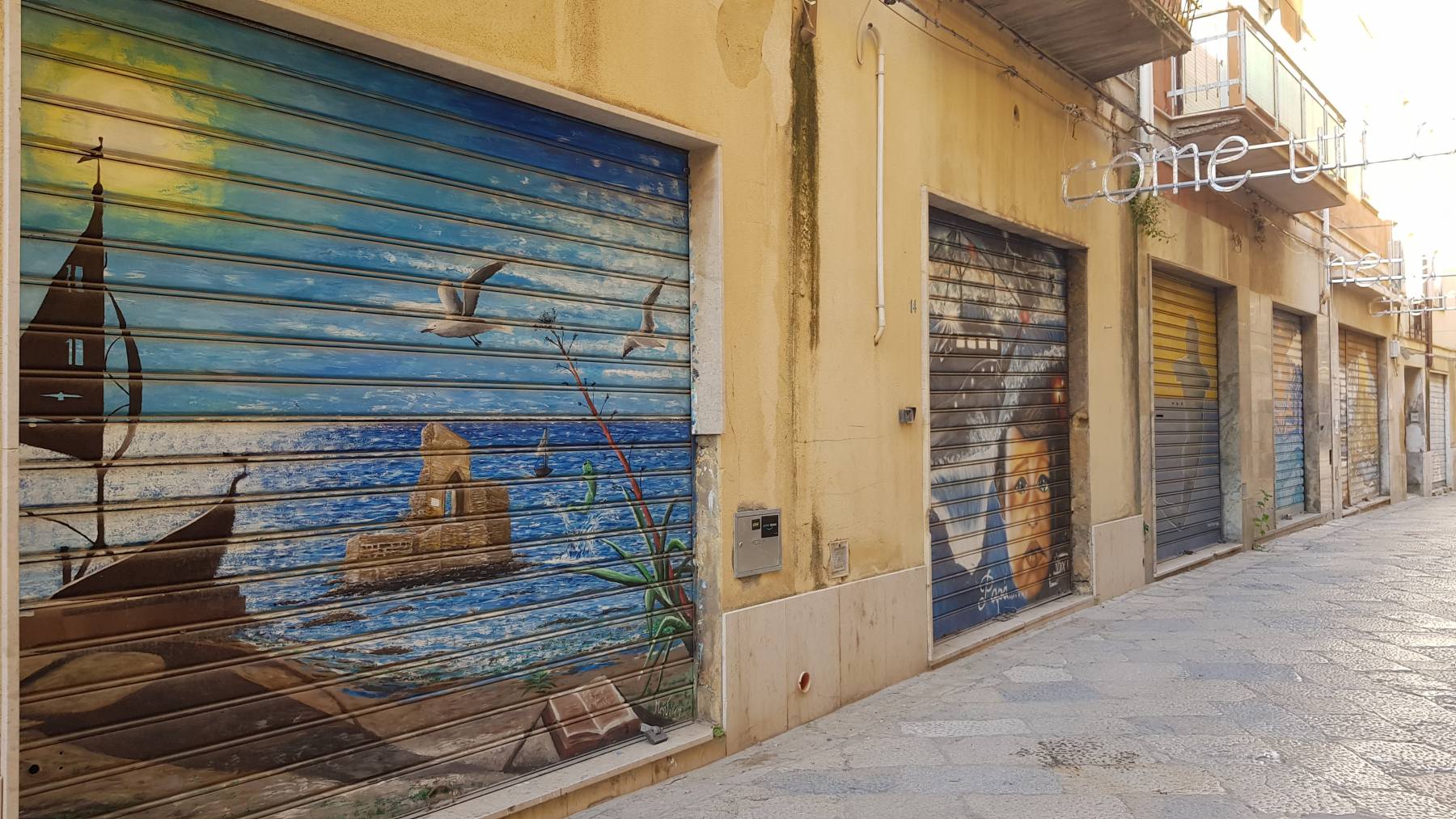 Drei Nächte bleiben wir an „unserem“ Leuchtturm. Wir wollen uns ein paar Orte an der Westküste Siziliens mit arabischem Flair anschauen. Mazara del Vallo und Marsala zunächst. Ersterer macht einen ganz netten Eindruck durch die vielen bemalten Tore und Keramikfliesen an den Wänden. Die engen Gassen wirken Bazarartig. Heute ist der zweite Weihnachtstag, so ist es ziemlich trostlos, da alles zu ist. Immerhin können wir so viele Kunstwerke auf den geschlossenen Toren sehen. Marsala, bekannt durch seinen Likörwein, ist dann doch einiges runtergekommener. Trapani etwas nördlicher, ist auch werktags trostlos, noch runtergekommener und in allen Nebenwegen liegt viel Müll. Noch ein paar erklärende Worte zu unseren eher negativen Eindrücken von den drei Orten. Teilweise historische Architektur und einige gepflegte Gassen oder Wegesabschnitte. Es überwiegen aber, wie überall auf Sizilien, ungepflegte und kaputte Gehwege, viele Gebäude in sehr stark erneuerungsbedürftigem Zustand und Müllansammlungen-/berge an Straßen und vielen Nebenwegen sowie auch an Stränden (speziell Stadtstrand Trapani). Unser Eindruck ist auch, dass vor vielen Jahren viel Geld in die Stadtplanung investiert worden ist, es aber nie bis zum Ende fertig gestellt wurde und sich dann auch niemand mehr darum gekümmert hat.