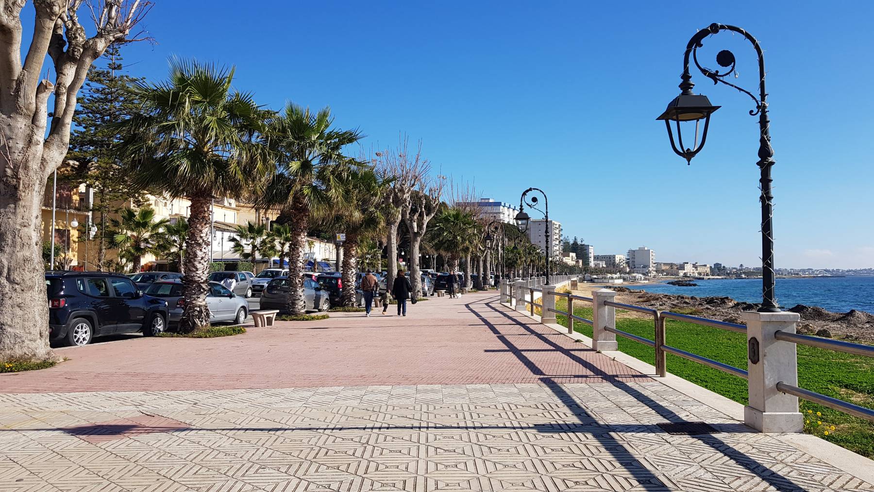 Viele Italiener flanieren durch die Straßen oder auf den manchmal ganz netten Promenaden. Dabei fallen wir als Touristen sofort auf. Erstens tragen wir nur kurzärmelige Shirts und Sonnenkäppi, die Einheimischen Winterjacken und Wollmützen. Für die ist Winter, für uns ist es mit 21 Grad sehr warm. Zweitens sind die Sizilianer alle feiertagsmäßig aufgetakelt und wir mit Outdoorkleidung und Fotoapparat doch underdressed.