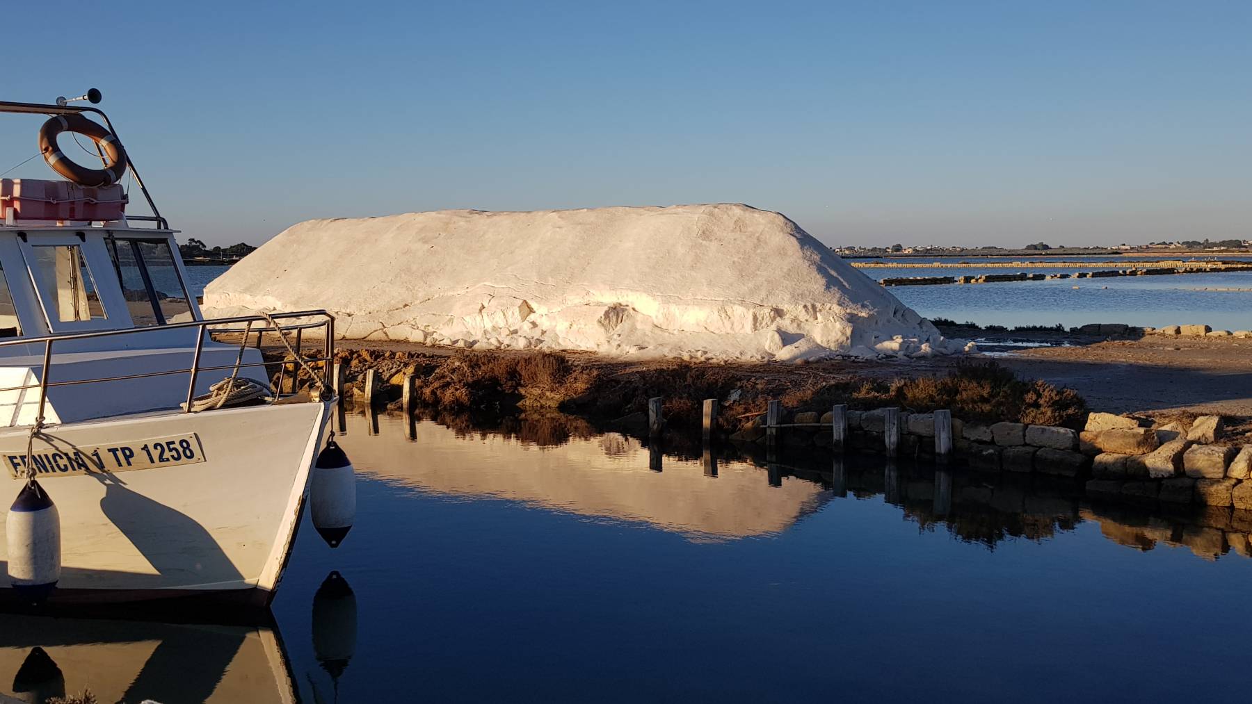 Die Strecke zwischen Marsala und Trapani verläuft für uns direkt an der Küste und damit durch Naturschutzzonen und Salinen. Bei wolkenlosem Himmel, vorbei an Flamingos genießen wir einen schönen Sonnenuntergang. Für € 1,– machen wir am nächsten Morgen einen Rundgang durch die Salinen.