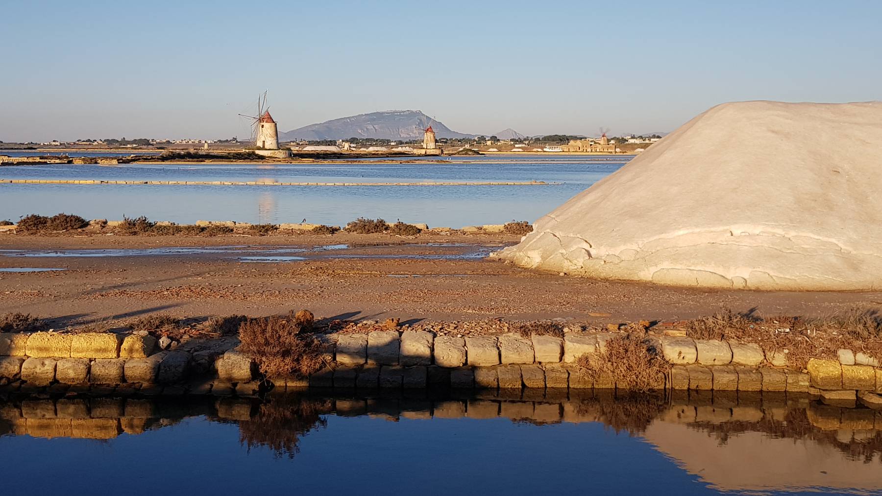 Die Strecke zwischen Marsala und Trapani verläuft für uns direkt an der Küste und damit durch Naturschutzzonen und Salinen. Bei wolkenlosem Himmel, vorbei an Flamingos genießen wir einen schönen Sonnenuntergang. Für € 1,– machen wir am nächsten Morgen einen Rundgang durch die Salinen.