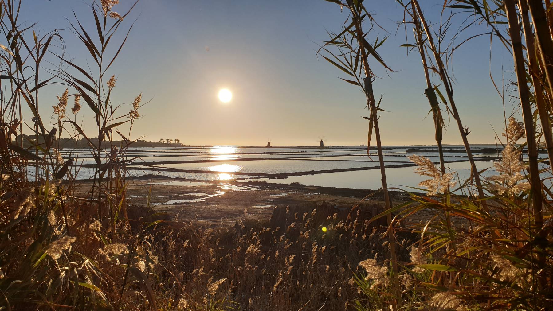 Die Strecke zwischen Marsala und Trapani verläuft für uns direkt an der Küste und damit durch Naturschutzzonen und Salinen. Bei wolkenlosem Himmel, vorbei an Flamingos genießen wir einen schönen Sonnenuntergang. Für € 1,– machen wir am nächsten Morgen einen Rundgang durch die Salinen.