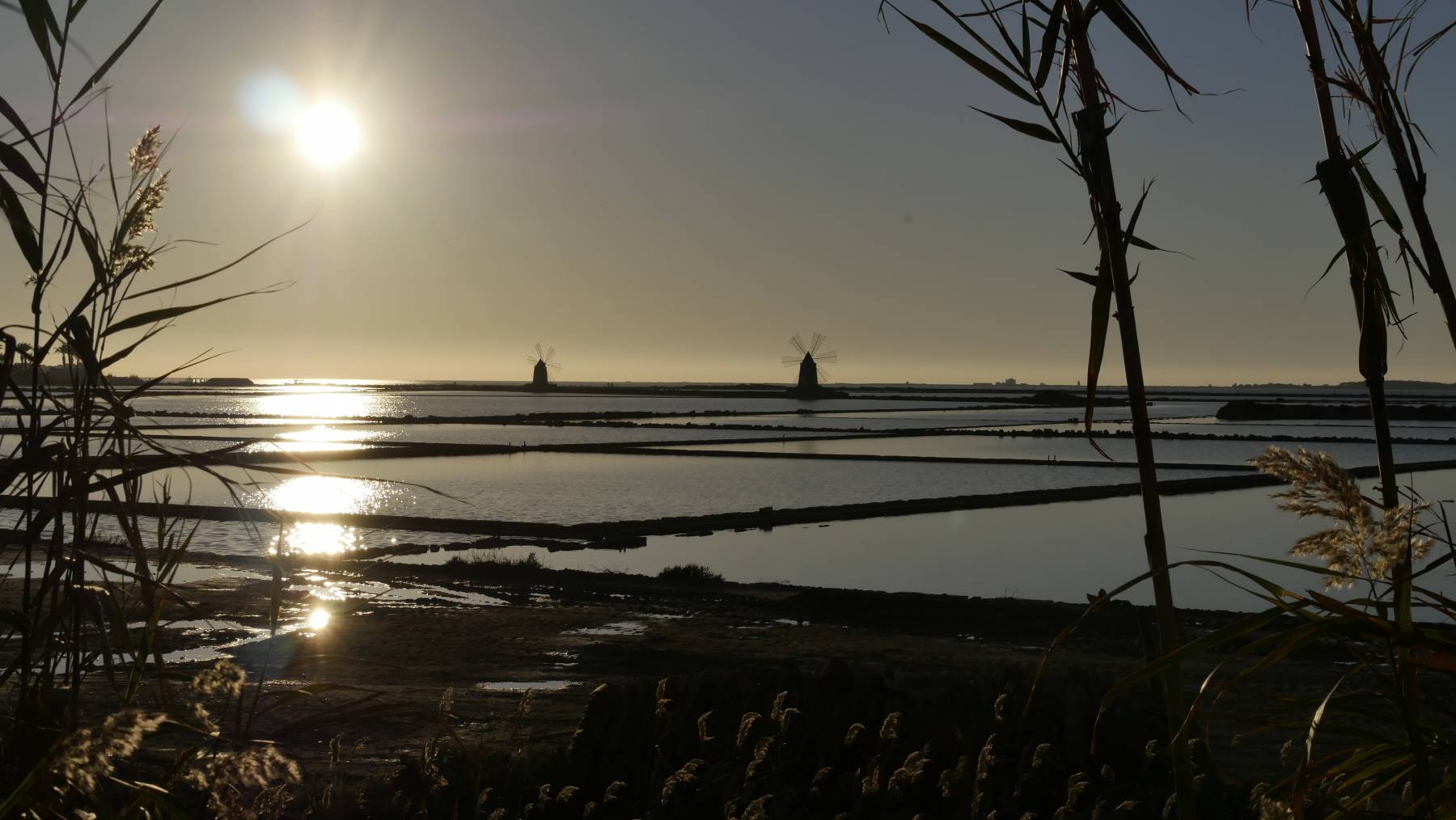 Die Strecke zwischen Marsala und Trapani verläuft für uns direkt an der Küste und damit durch Naturschutzzonen und Salinen. Bei wolkenlosem Himmel, vorbei an Flamingos genießen wir einen schönen Sonnenuntergang. Für € 1,– machen wir am nächsten Morgen einen Rundgang durch die Salinen.