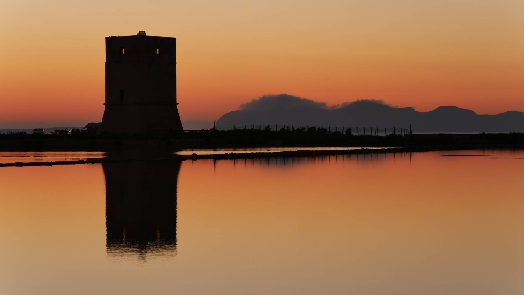 Die Strecke zwischen Marsala und Trapani verläuft für uns direkt an der Küste und damit durch Naturschutzzonen und Salinen. Bei wolkenlosem Himmel, vorbei an Flamingos genießen wir einen schönen Sonnenuntergang. Für € 1,– machen wir am nächsten Morgen einen Rundgang durch die Salinen.