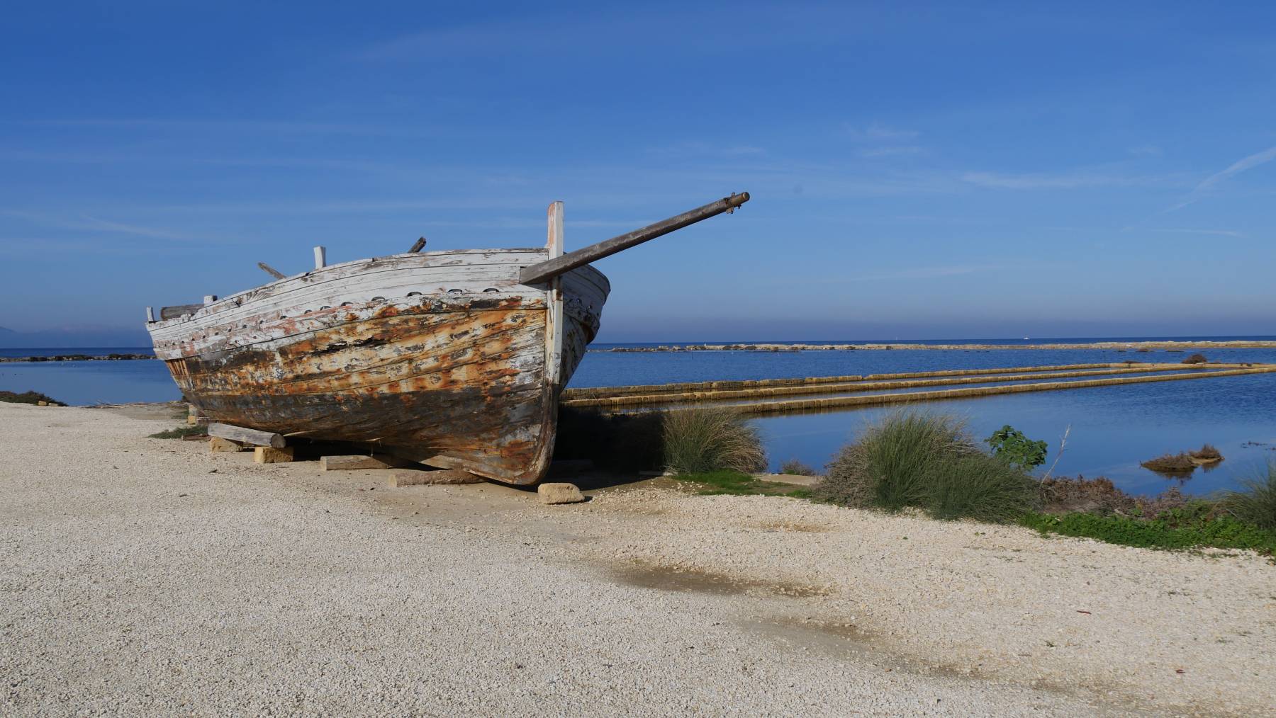 Die Strecke zwischen Marsala und Trapani verläuft für uns direkt an der Küste und damit durch Naturschutzzonen und Salinen. Bei wolkenlosem Himmel, vorbei an Flamingos genießen wir einen schönen Sonnenuntergang. Für € 1,– machen wir am nächsten Morgen einen Rundgang durch die Salinen.
