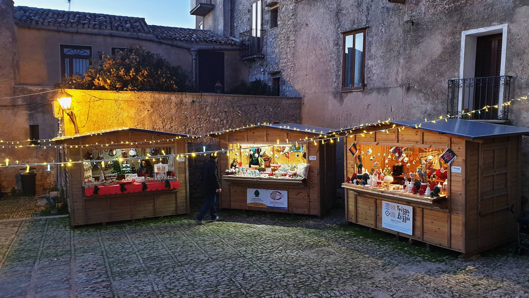 Von unserem Übernachtungsplatz neben dem Salzmuseum haben wir bereits auf Trapani geschaut und den dahinter liegenden Hügel mit dem Ort Erice. Als eines der ältesten Siedlungspunkte Siziliens, 1200 v.Chr. von Elymern besiedelt, ist er heute über eine Seilbahn mit Trapani verbunden und touristisch geprägt. Uns überrascht zum einen die grandiose Rundum-Aussicht und zum anderen der gar nicht vorhandene Müll, das ist für Sizilien in jedem Fall besonders. Zudem ist es unser erster Ort in Italien der richtig weihnachtlich geschmückt ist und sogar einen kleinen Weihnachtsmarkt hat. Ein Ausflug, den wir positiv in Erinnerung behalten.