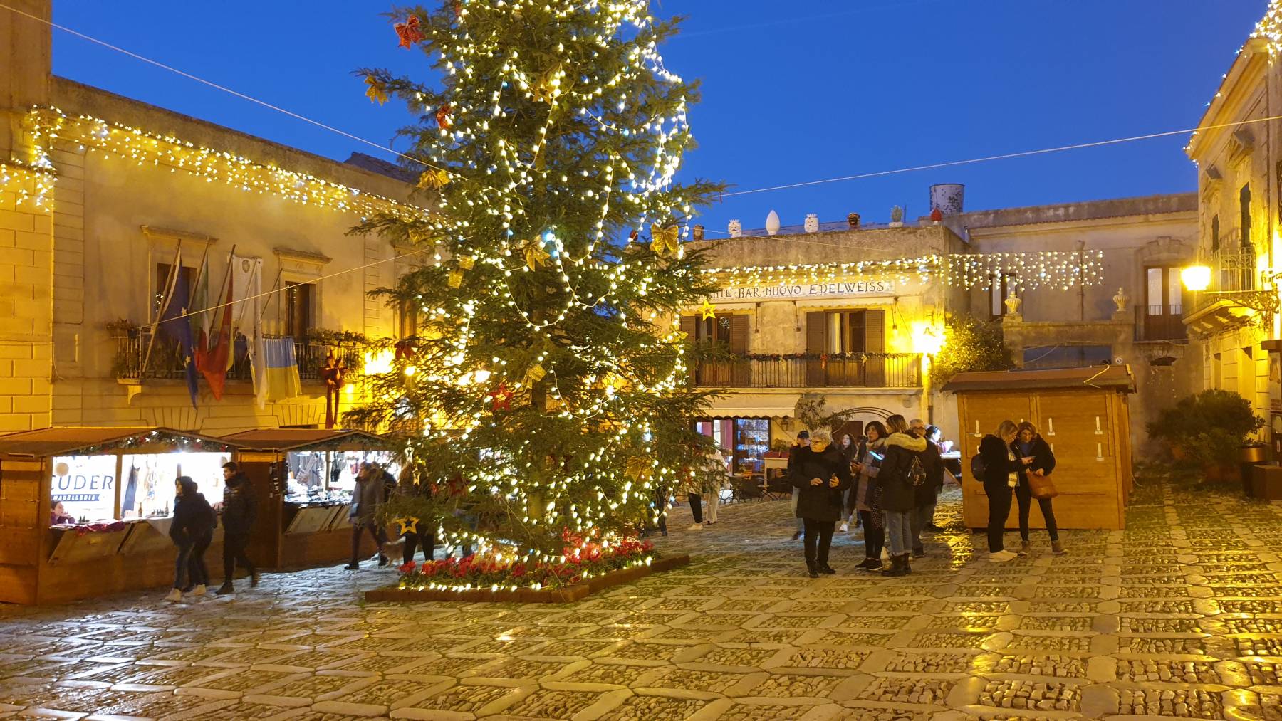 Von unserem Übernachtungsplatz neben dem Salzmuseum haben wir bereits auf Trapani geschaut und den dahinter liegenden Hügel mit dem Ort Erice. Als eines der ältesten Siedlungspunkte Siziliens, 1200 v.Chr. von Elymern besiedelt, ist er heute über eine Seilbahn mit Trapani verbunden und touristisch geprägt. Uns überrascht zum einen die grandiose Rundum-Aussicht und zum anderen der gar nicht vorhandene Müll, das ist für Sizilien in jedem Fall besonders. Zudem ist es unser erster Ort in Italien der richtig weihnachtlich geschmückt ist und sogar einen kleinen Weihnachtsmarkt hat. Ein Ausflug, den wir positiv in Erinnerung behalten.