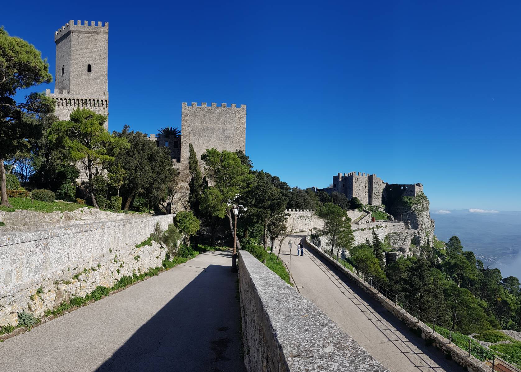 Von unserem Übernachtungsplatz neben dem Salzmuseum haben wir bereits auf Trapani geschaut und den dahinter liegenden Hügel mit dem Ort Erice. Als eines der ältesten Siedlungspunkte Siziliens, 1200 v.Chr. von Elymern besiedelt, ist er heute über eine Seilbahn mit Trapani verbunden und touristisch geprägt. Uns überrascht zum einen die grandiose Rundum-Aussicht und zum anderen der gar nicht vorhandene Müll, das ist für Sizilien in jedem Fall besonders. Zudem ist es unser erster Ort in Italien der richtig weihnachtlich geschmückt ist und sogar einen kleinen Weihnachtsmarkt hat. Ein Ausflug, den wir positiv in Erinnerung behalten.