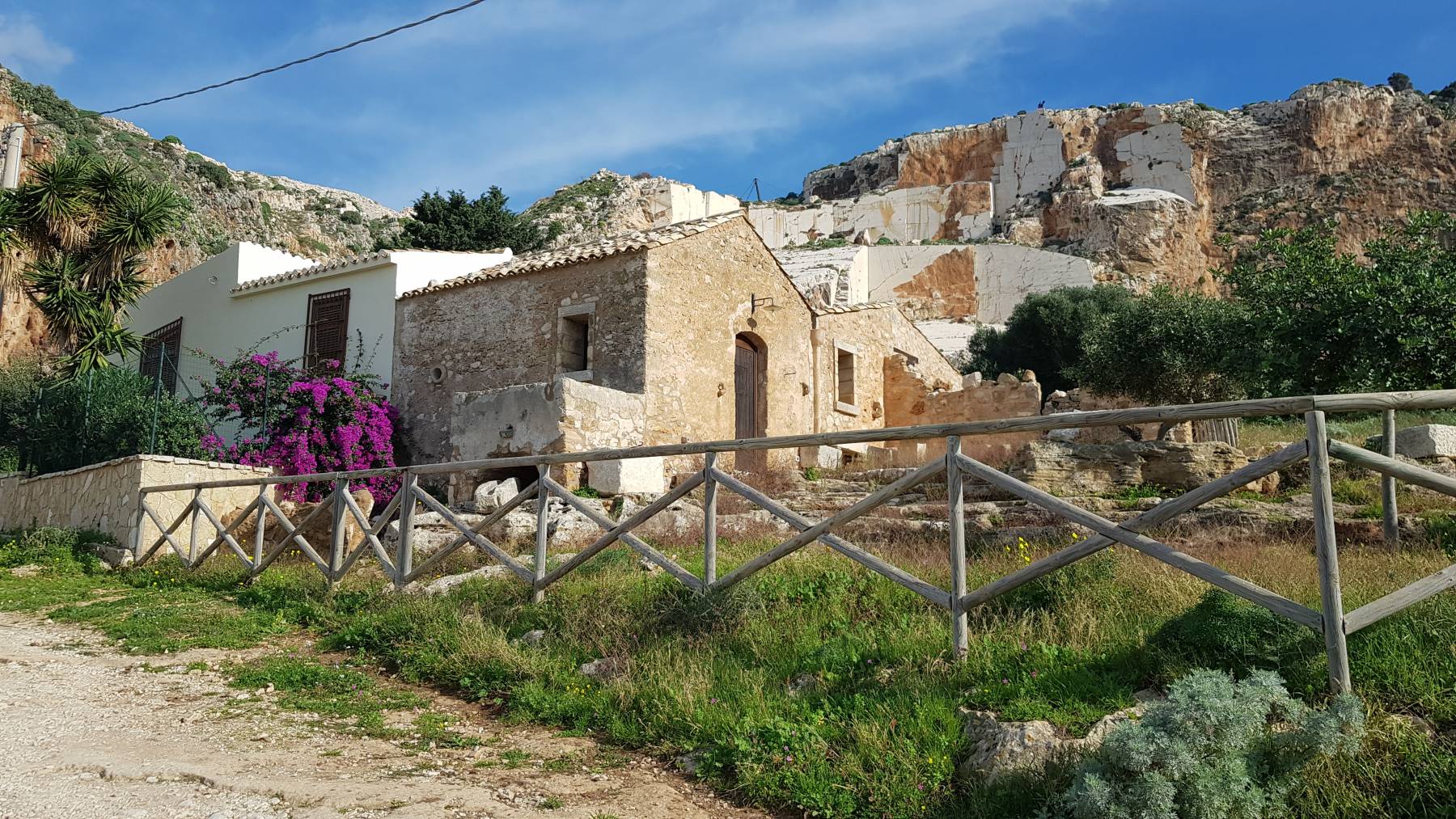 Die große Wanderung um den Berg Monte Cofano können wir uns abschminken, gesperrt wegen Steinschlag. Ein ausgewiesener, in der Nebensaison kostenloser, Parkplatz für Wohnmobile mit Blick auf die Bucht zwischen den beiden Hügeln von Erice und Monte Cofano ist unsere Wahl für wohl ein paar Tage.