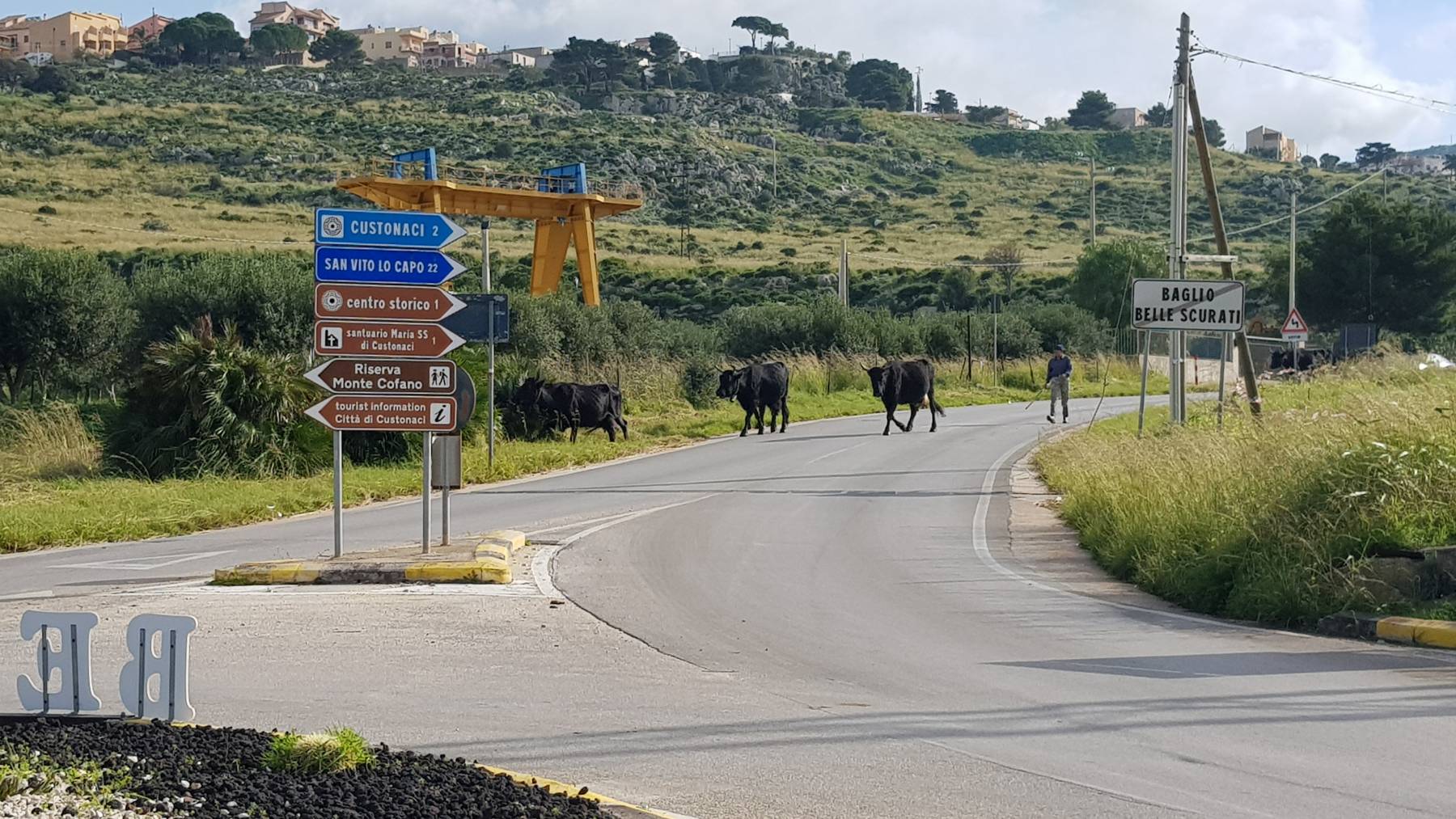 Die große Wanderung um den Berg Monte Cofano können wir uns abschminken, gesperrt wegen Steinschlag. Ein ausgewiesener, in der Nebensaison kostenloser, Parkplatz für Wohnmobile mit Blick auf die Bucht zwischen den beiden Hügeln von Erice und Monte Cofano ist unsere Wahl für wohl ein paar Tage.