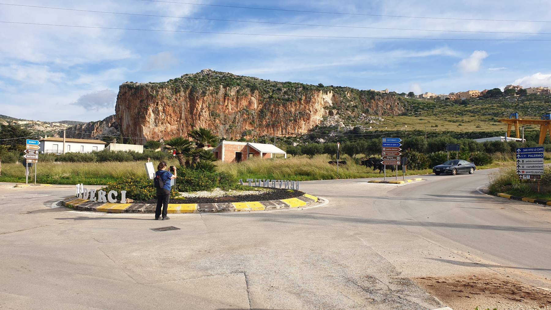Die große Wanderung um den Berg Monte Cofano können wir uns abschminken, gesperrt wegen Steinschlag. Ein ausgewiesener, in der Nebensaison kostenloser, Parkplatz für Wohnmobile mit Blick auf die Bucht zwischen den beiden Hügeln von Erice und Monte Cofano ist unsere Wahl für wohl ein paar Tage.