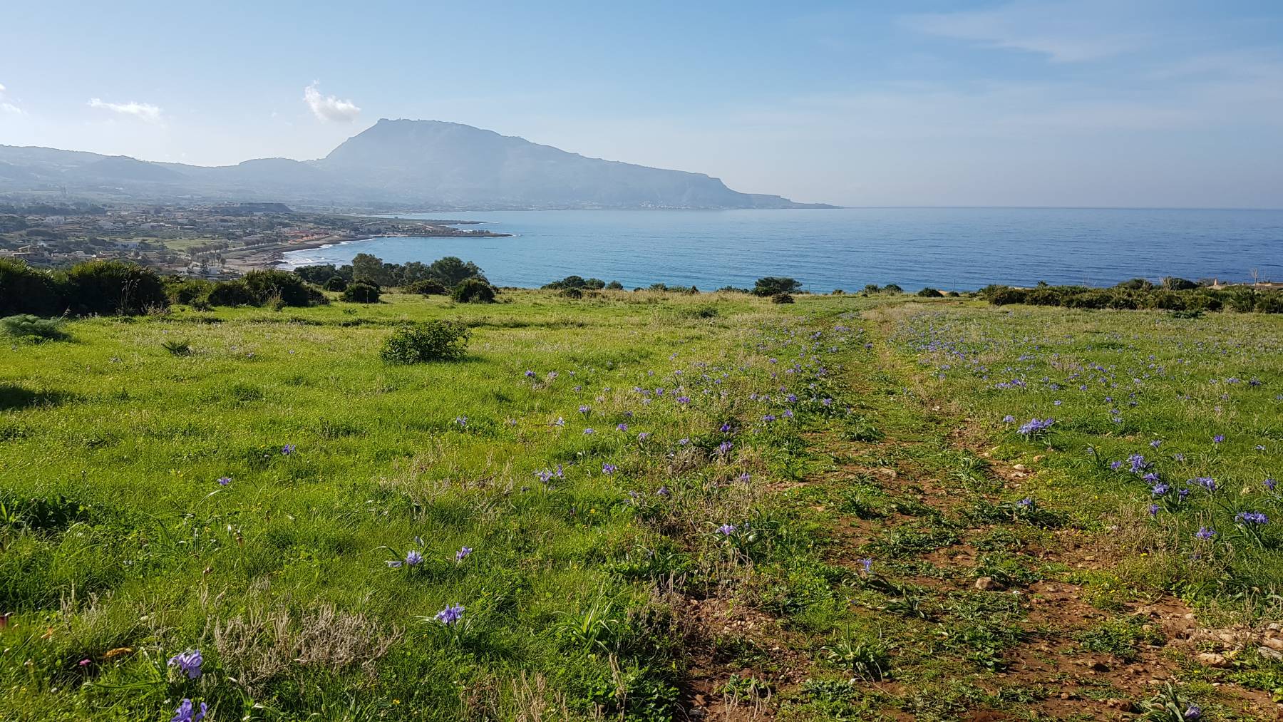 Die große Wanderung um den Berg Monte Cofano können wir uns abschminken, gesperrt wegen Steinschlag. Ein ausgewiesener, in der Nebensaison kostenloser, Parkplatz für Wohnmobile mit Blick auf die Bucht zwischen den beiden Hügeln von Erice und Monte Cofano ist unsere Wahl für wohl ein paar Tage.