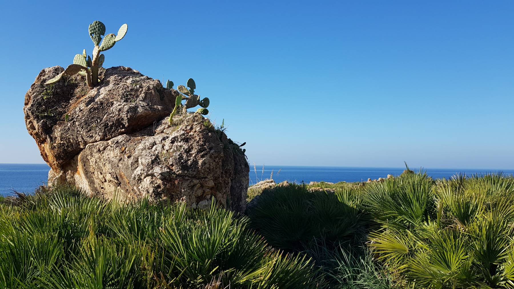 Die große Wanderung um den Berg Monte Cofano können wir uns abschminken, gesperrt wegen Steinschlag. Ein ausgewiesener, in der Nebensaison kostenloser, Parkplatz für Wohnmobile mit Blick auf die Bucht zwischen den beiden Hügeln von Erice und Monte Cofano ist unsere Wahl für wohl ein paar Tage.